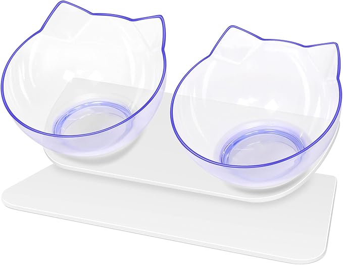 Raised Double Cat Bowls with 15° Tilted Neck Guard for Better Feeding